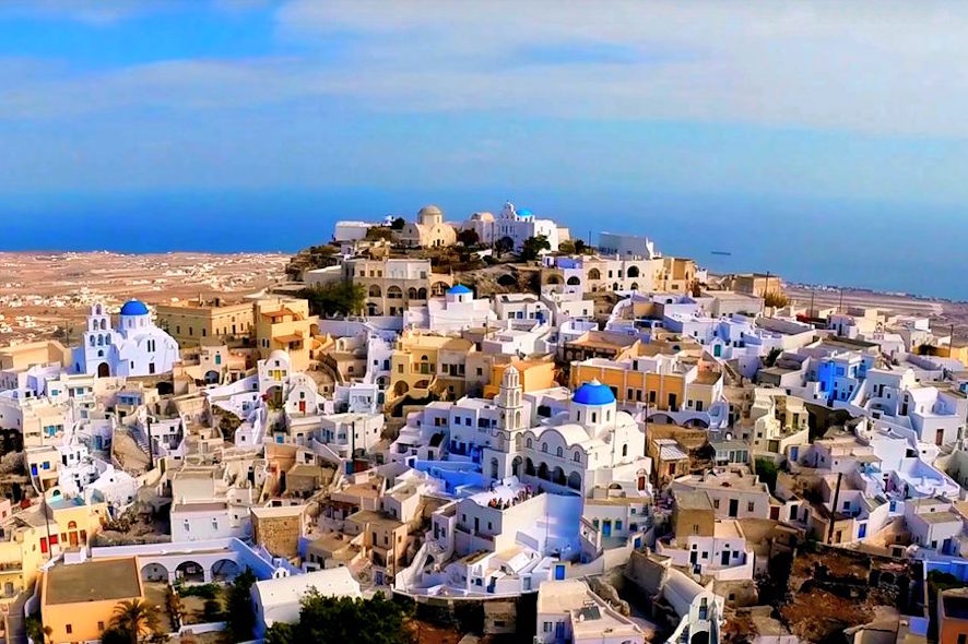 Fira is the capital of Santorini and the commercial and cultural centre of the island. It is located in the western part of Santorini, on the caldera cliffs opposite the volcano. There are various museums and wonderful landmarks to visit, such as the Megaro Gyzi Cultural Center, the Archaeological Museum of Thera and the Museum of Prehistoric Thera. The majestic Orthodox Metropolitan Cathedral sitting prominently on the caldera edge and the Catholic Cathedral of Saint John the Baptist located in the city centre are also worth a visit. In Fira, there is a wide range of hotels catering for all tastes and budgets as well as the greatest dining out and entertainment selection of the island. The old port of Santorini lies at the bottom of the caldera cliff, where there are several restaurants, traditional taverns and small shops. Access to the old port is feasible by walking down the 600 stone steps, taking a donkey ride or the Cable Car, which leaves from the top part of the Fira Caldera.